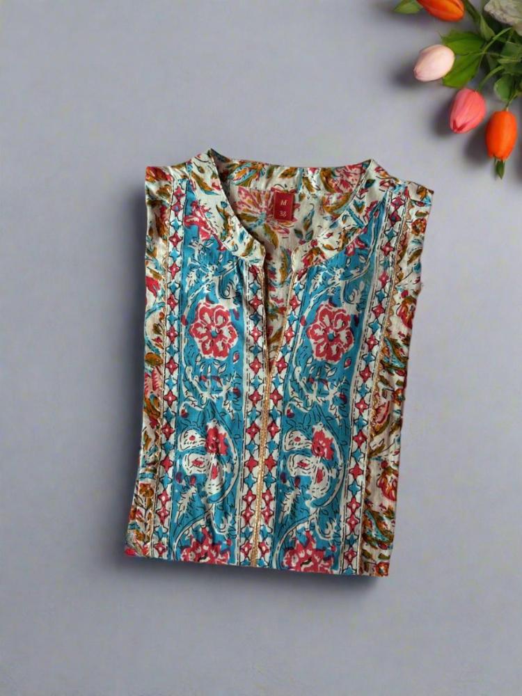 Hand block Printed Blue Kurta
