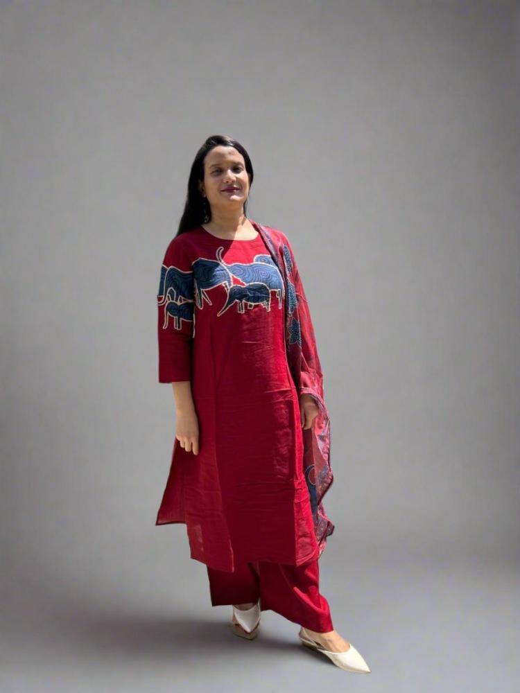 Elephant print Maroon kurta & Palazzo with Dupatta