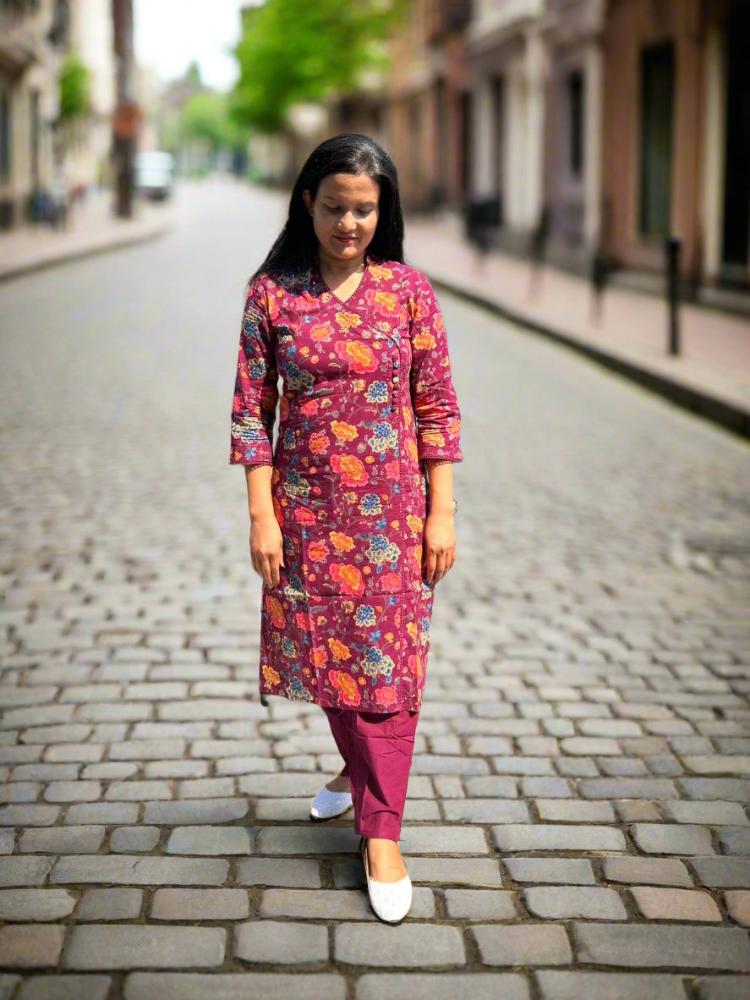 Kurta Details: Fabric: Cotton Neckline: Elegant V Neck Sleeves: 3/4th sleeves Length: Knee-length, perfect for both casual and formal occasions Bottom Details: Fabric: Soft and breathable cotton Length: Ankle-length, creating a sophisticated look Care Tip: Machine washable and easy to maintain, making it a practical choice for your busy lifestyle. Style Tip: Choose minimalistic accessories like stud earrings or a delicate bracelet to keep the look understated and effortless. Note: Slight color changes are expected due to camera settings and lighting effects, due to which exchange or return is not accepted. |