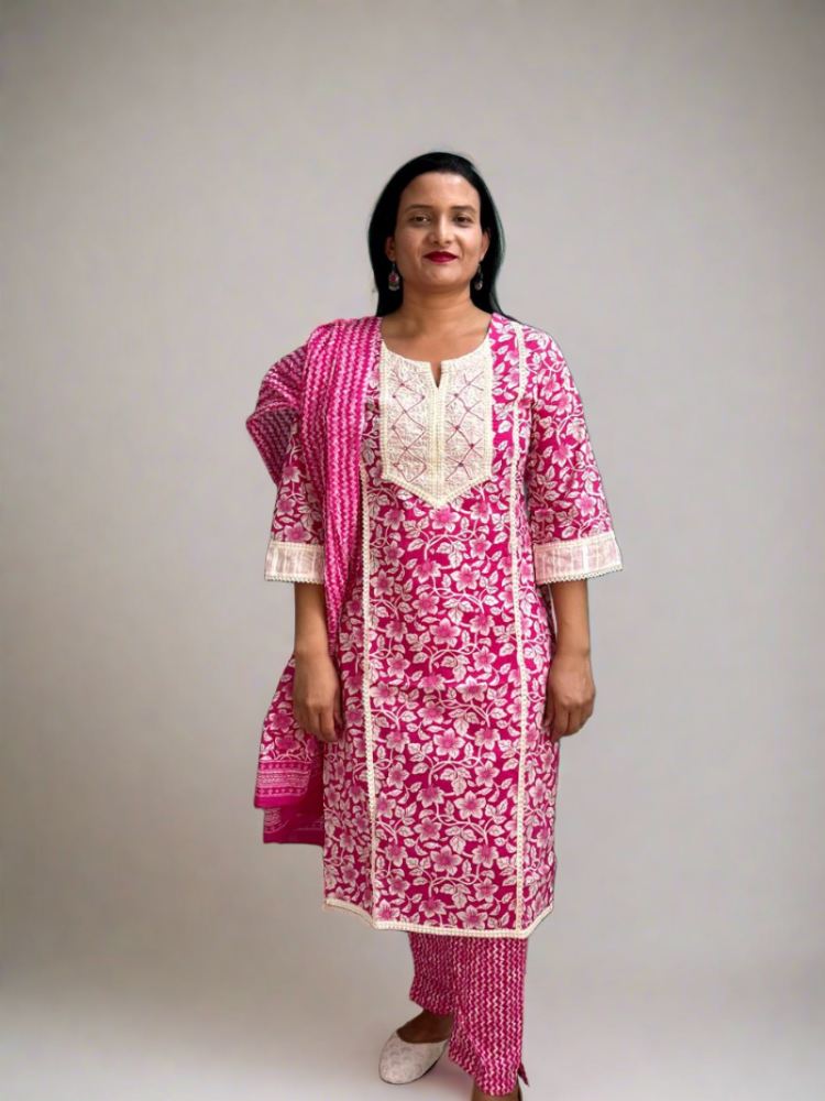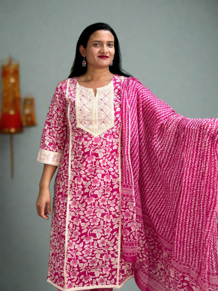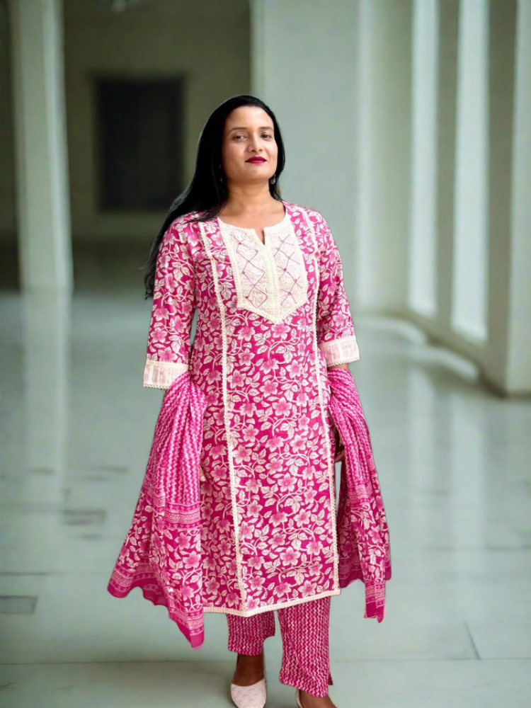 Kurta Details: Fabric: Premium Cotton Neckline: Round Neck Sleeves: 3/4th sleeves Length: Knee length, perfect for both casual and formal occasions Bottom Details: Fabric: Soft and breathable cotton Length: Ankle-length, creating a sophisticated look Care Tip: Machine washable and easy to maintain, making it a practical choice for your busy lifestyle. Style Tip: •For a contemporary twist, accessorize with a sleek clutch and minimalistic jewelry. Note: Slight colour changes are expected due to camera settings and lighting effects, due to which exchange or return is not accepted. |