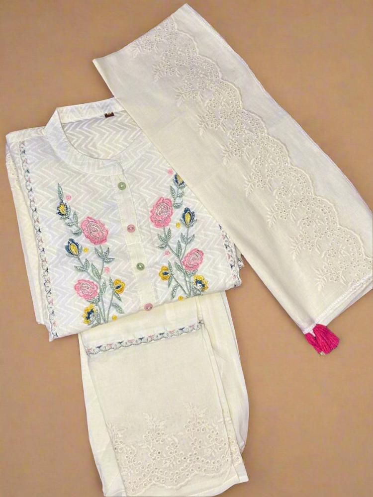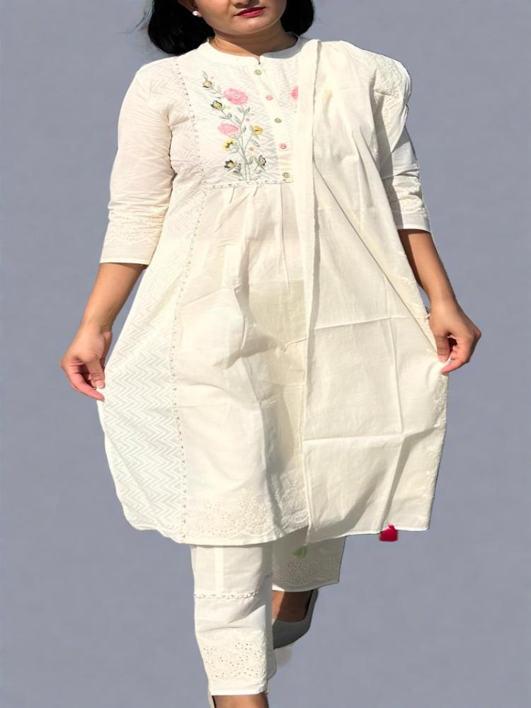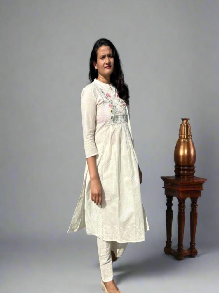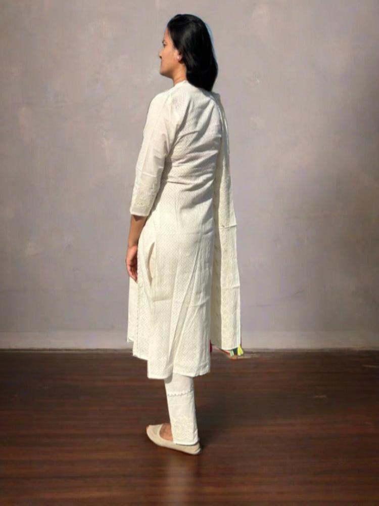 Kurta Details: Fabric: Cotton Neckline: Mandarin collar Sleeves: 3/4th sleeves Length: Mid-length, perfect for both casual and formal occasions Bottom Details: Fabric: Soft and breathable cotton Length: Ankle-length, creating a sophisticated look Care Tip: Machine washable and easy to maintain, making it a practical choice for your busy lifestyle. Style Tip: • Pair with ethnic jhumkas and a statement ring for a traditional look. |